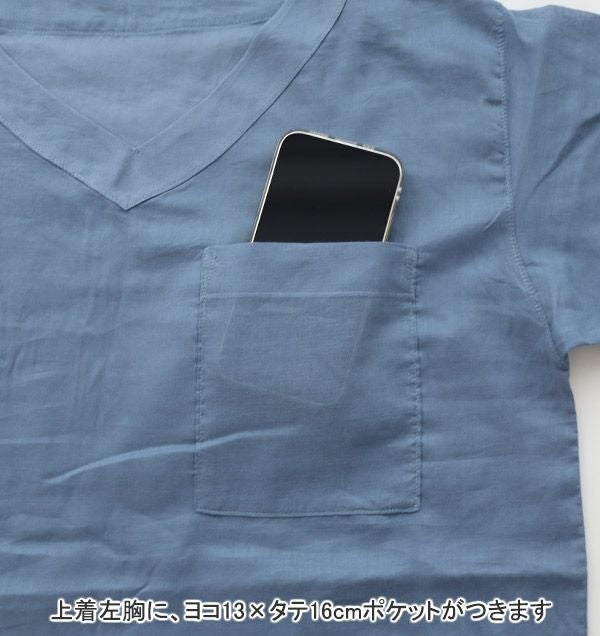 | 仕様 | 長袖 長ズボン 上下セット 上着:Vネック かぶり 左胸ポケットあり |