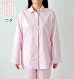 まるでシャツのようなストライプ柄。ズボンだけかえればゴミ出しはもちろん外出にも着ていけそうです!涼しい夏のルームウェアとしても