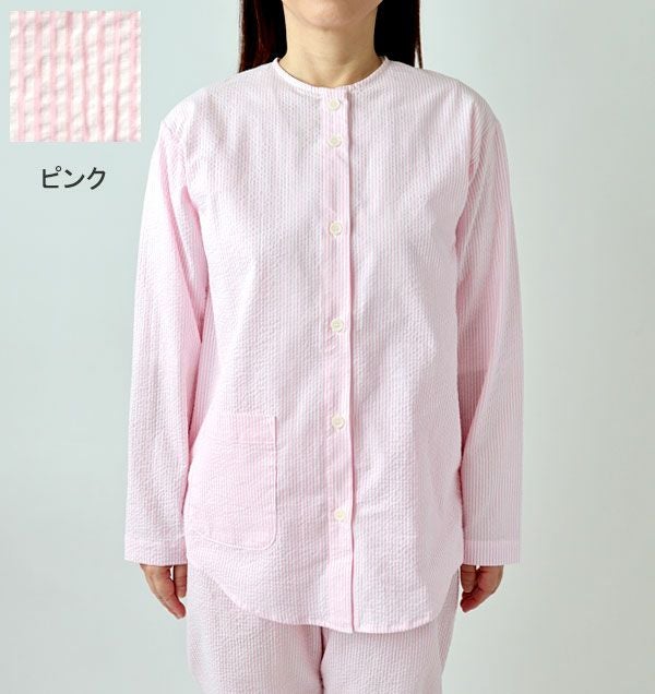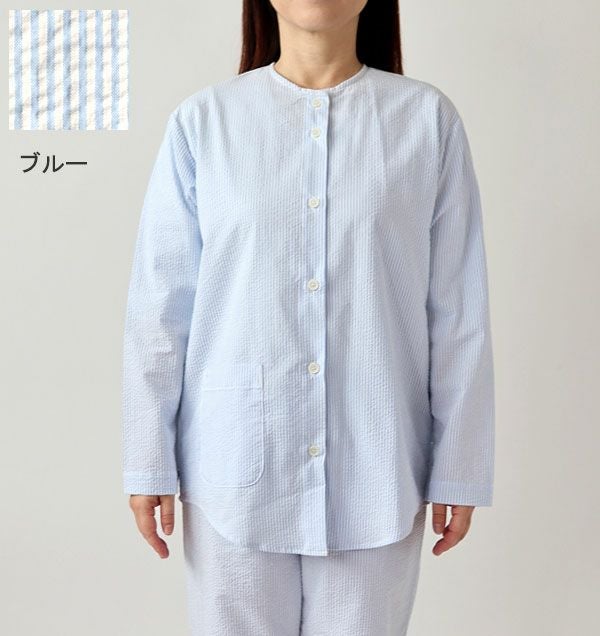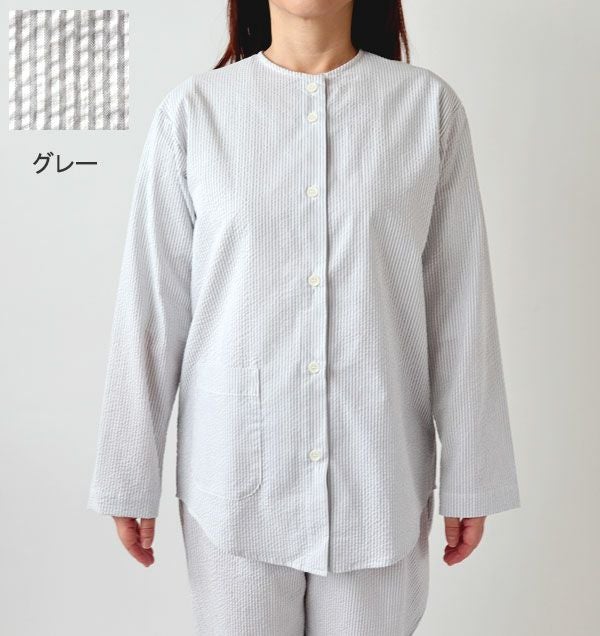 まるでシャツのようなストライプ柄。ズボンだけかえればゴミ出しはもちろん外出にも着ていけそうです!涼しい夏のルームウェアとしても