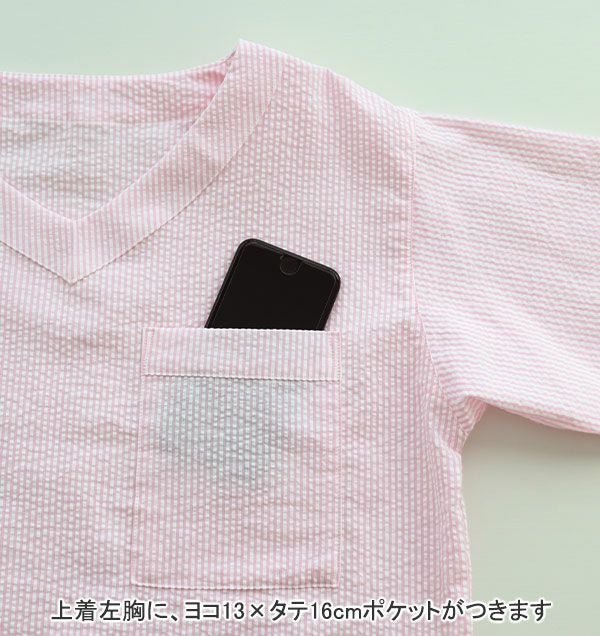 | 仕様 | 長袖 長ズボン 上下セット 上着:かぶり 襟なし Vネック 左胸ポケット |