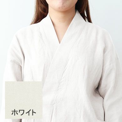 べたつかず涼しく、柔らかな肌触りが心地良いリネンのレディース作務衣です!クールクラッシュというもみほぐし加工で特別柔らかくクタっとした風合いが気持ち良い素材です。