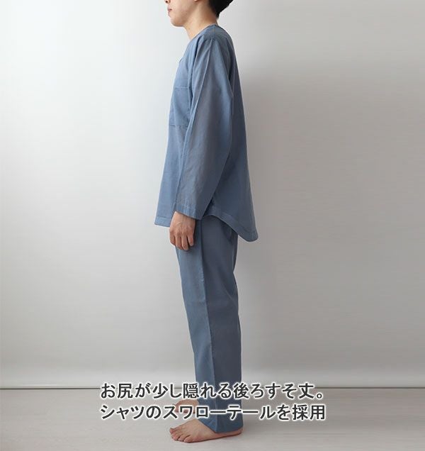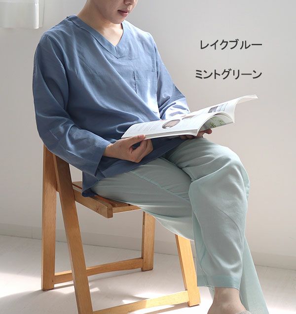 新感覚ガーゼ!柔らかいのにサラサラの肌触り 80オーガニック超長綿1重ガーゼメンズパジャマ・長袖/かぶり/Vネック【オーダーメイド】