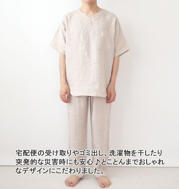 60先染めフランスリネンメンズパジャマ