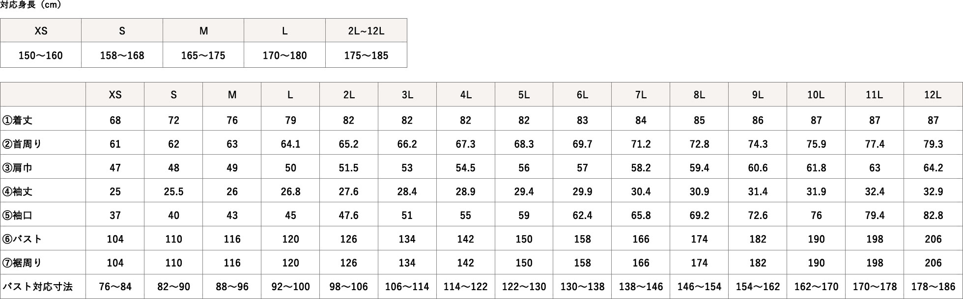 1cm単位で丈をかえられます(未選択の場合はサイズ表どおり)