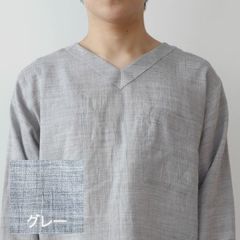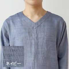 近江ちぢみ麻メンズパジャマ 上下セット・長袖/かぶり/Vネック