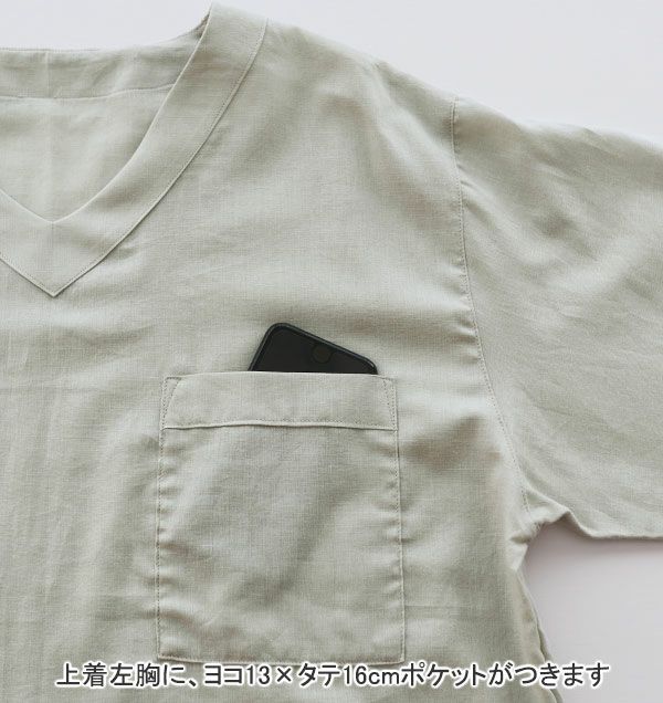 部屋着、ルームウェア感覚で着られるVネックのパジャマのご要望を大変多く頂いておりました。しゃがんでも胸が見えにくく、どんな生地でもかぶりやすいサイズ感とVネックの開き具合に大変苦労しました。