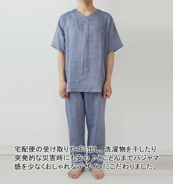 エアコン等の冷え対策にも♪肘、膝隠して安心のフランスリネンメンズパジャマ
