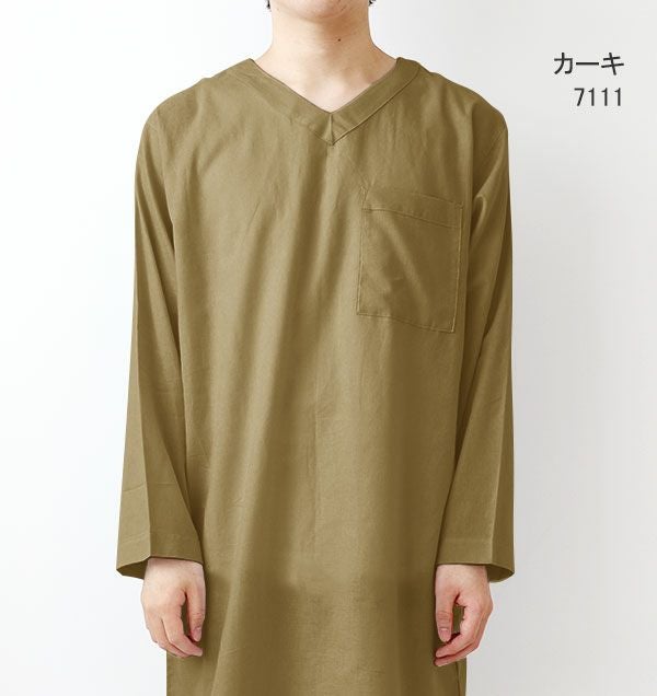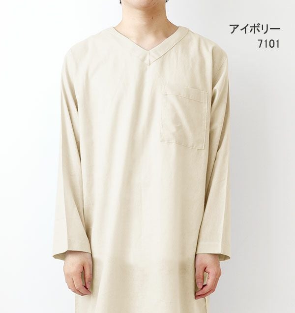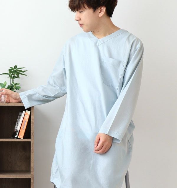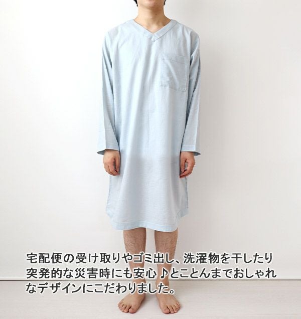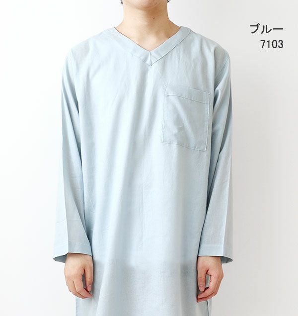 柔らか×軽い×涼しい!和晒製法の1重ガーゼ 夏のかるふわガーゼメンズスリーパー・長袖/かぶり/Vネック 【オーダーメイド】