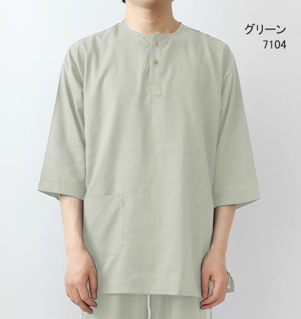 七分袖の1重ガーゼで涼しいけれど冷やさない! 夏のかるふわガーゼメンズパジャマ上下セット・七分袖/かぶり/ヘンリーネック【オーダーメイド】