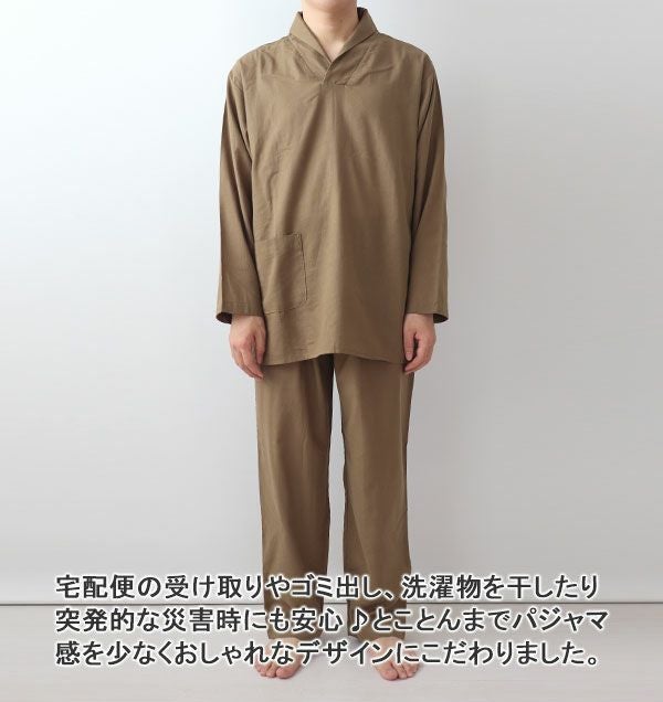 柔らか×軽い×涼しい!和晒製法の1重ガーゼ 夏のかるふわガーゼメンズパジャマ上下セット・ショールカラー/かぶり/長袖【オーダーメイド】