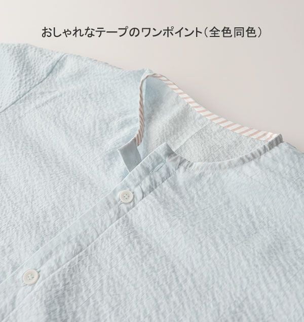 ふわっと軽やか、ベタつかない。夏の爽快パジャマ エアリーリップルレディースパジャマ上着単品・長袖/前開き/襟なし 【オーダーメイド】