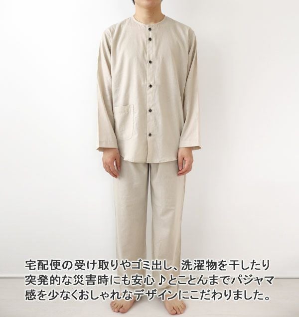 やわらかニットリネンメンズパジャマ 上下セット・長袖/前開き/襟あり