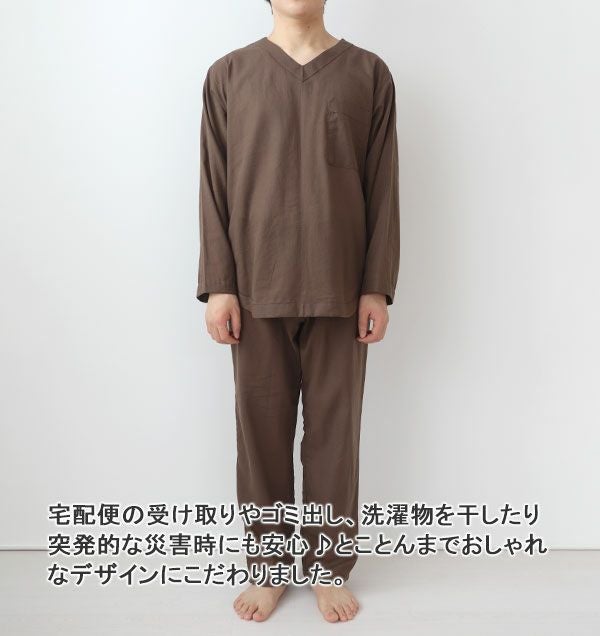 夏のかるふわガーゼメンズパジャマ 上下セット・長袖/前開き/襟あり