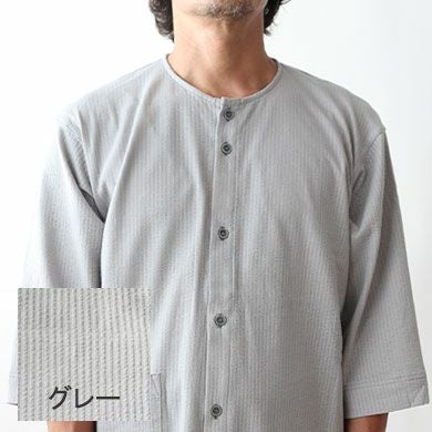 ふわっと軽やか、ベタつかない。夏の爽快パジャマ エアリーリップルメンズパジャマ 上下セット・七分袖/前開き/襟なし 【オーダーメイド】