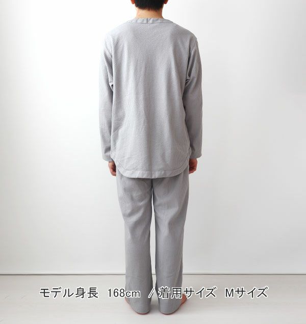 べたつかない、夏のやわらかリラックス ニットサッカーメンズパジャマ 上下セット・長袖/かぶり/Vネック 【オーダーメイド】