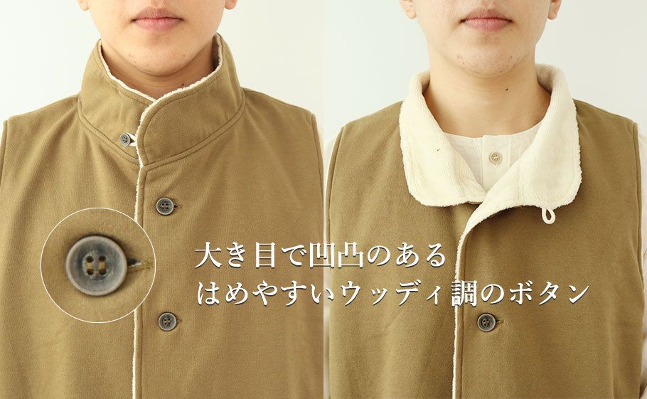 コットンムースメンズ立ち襟ベスト・前開き