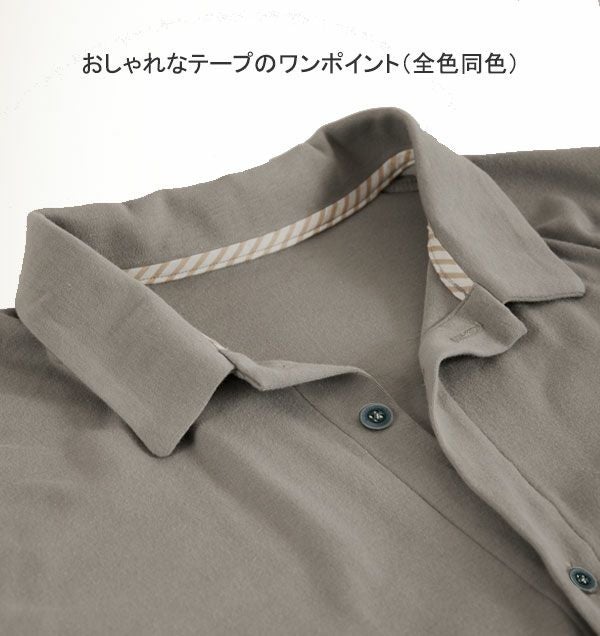 コットンムースメンズパジャマ上着単品・長袖/前開き/襟あり