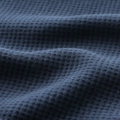 ワッフル調のワッフルフェイスという独特の編み方で表面は凹凸になっており、生地に表情が生まれておしゃれな印象に。肌にあたる方は凹凸がないので、朝起きた時にワッフル調のポコポコが肌に残ることもありません。また、極端に縮みやすい一般的なワッフルに比べ、こちらの生地は縮みにくくなっています。