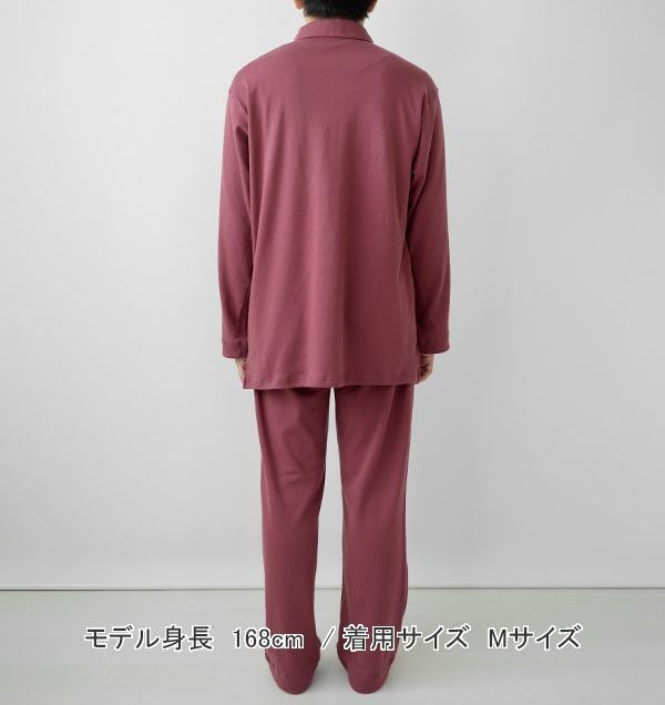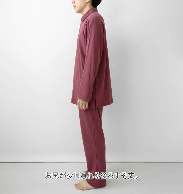 コットンムースメンズパジャマ上下セット・長袖/かぶり/ポロカラー