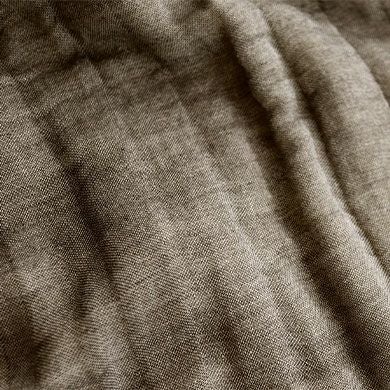 表面(1層目)と裏面(6層)をタテ糸を生成り、ヨコ糸を色糸の先染め糸を使用し、落ち着いた光沢と雰囲気あるシャンブレー織りに仕上げています。またタンブラー乾燥で生地を収縮させることで生まれる上品なシボ感が、平面ではなく、奥行きをだし高級感のあるおしゃれな表情になっています。