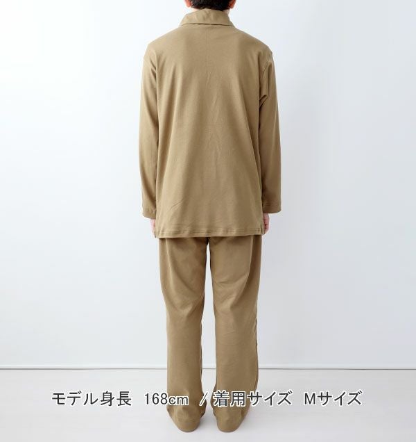 コットンムースメンズパジャマ上着単品・長袖/かぶり/ショールカラー