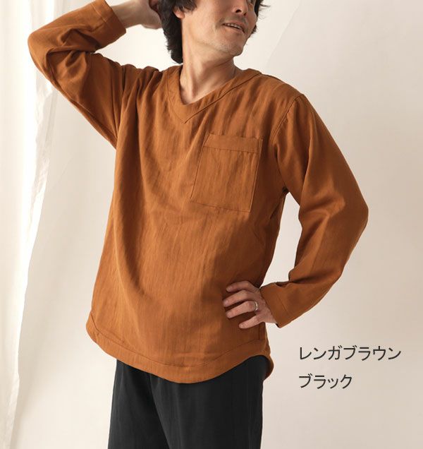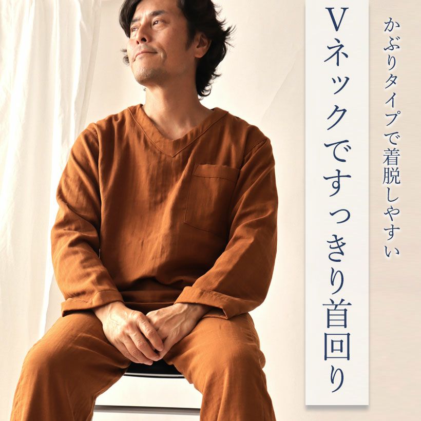 毛布なみの暖かさ!冬も使えるガーゼ 3重ガーゼメンズパジャマ 上下セット・長袖/かぶり/Vネック 【オーダーメイド】