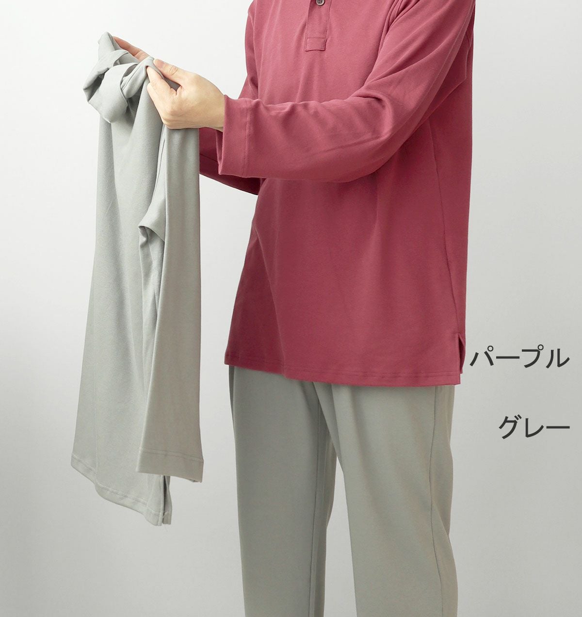 冬のお肌が喜ぶもっちりなめらかスムースニット コットンムースメンズパジャマ上下セット・長袖/かぶり/ポロカラー 【オーダーメイド】