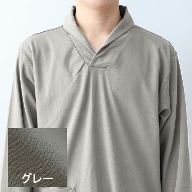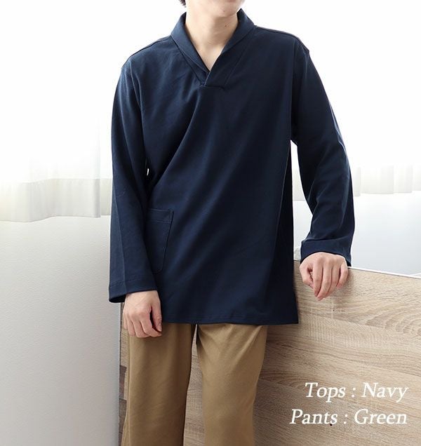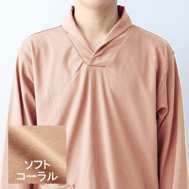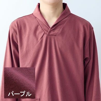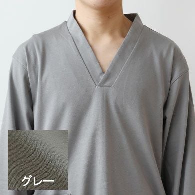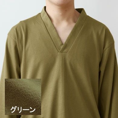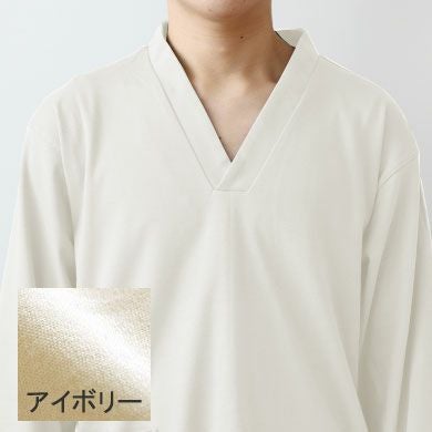 冬のお肌が喜ぶもっちりなめらかスムースニット コットンムースメンズ作務衣下着・ズボン付/長袖/かぶり 【オーダーメイド】
