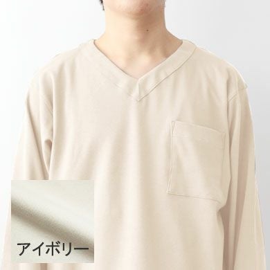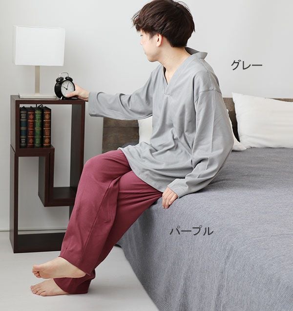 冬のお肌が喜ぶもっちりなめらかスムースニット コットンムースメンズパジャマ 上下セット・長袖/かぶり/Vネック 【オーダーメイド】