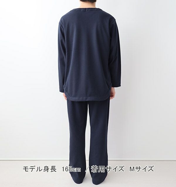 冬の乾燥対策に!椿油配合うるおいニット オーガニックコットンスムースニットメンズパジャマ上下セット・長袖/かぶり/Vネック 【オーダーメイド】