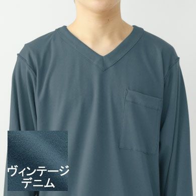 縫い目が外側だからチクチクしない! コットンムースメンズ敏感肌パジャマ上下セット・長袖/かぶり/Vネック 【オーダーメイド】