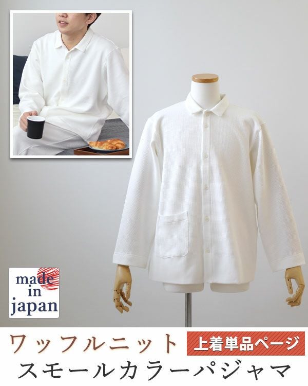 シワになりにくい!おしゃれなワッフルニット コットンワッフルニットメンズパジャマ上着単品・長袖/前開き/襟あり 【オーダーメイド】