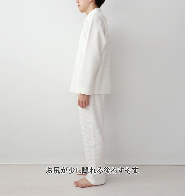 表面はワッフルでシワが目立ちにくく、内側はフラットで肌に跡が残らない。普段着がわりにされているお客様も