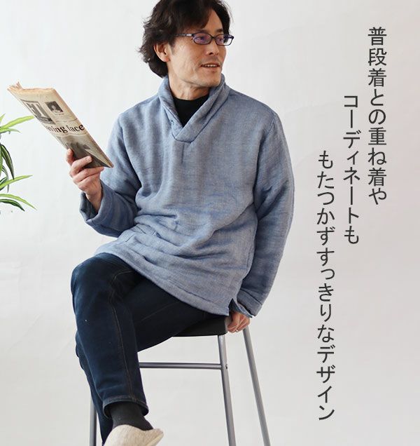 真冬に着る、ふっかふかガーゼケット コットンウール6重ガーゼメンズパジャマ上着単品・長袖/かぶり/ショールカラー 【オーダーメイド】