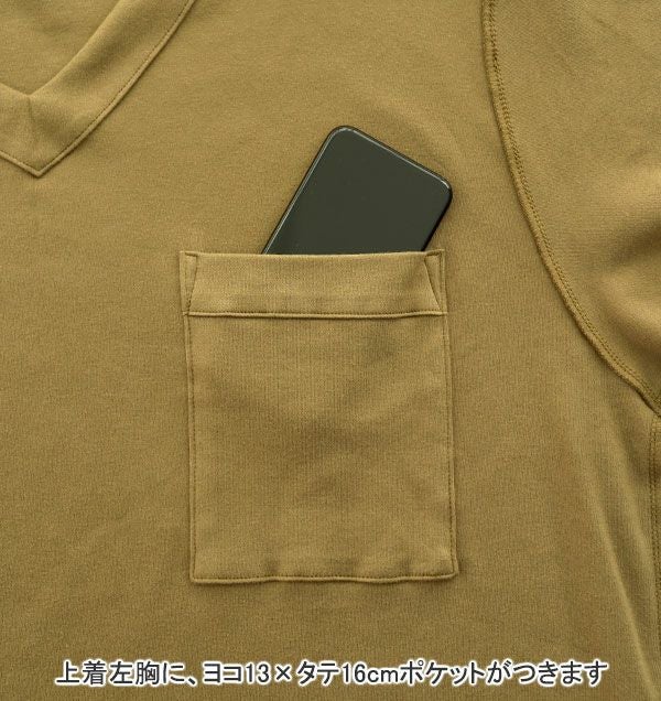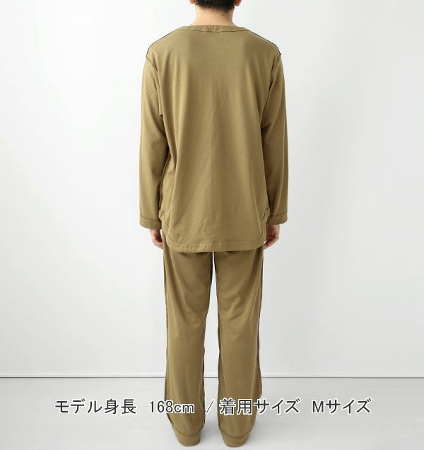 縫い目が外側だからチクチクしない! コットンムースメンズ敏感肌パジャマ上着単品・長袖/かぶり/Vネック 【オーダーメイド】