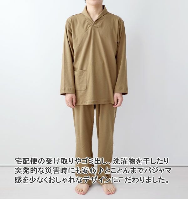 冬の乾燥対策に!椿油配合うるおいニット オーガニックコットンスムースニットメンズパジャマ上着単品・長袖/かぶり/ショールカラー 【オーダーメイド】