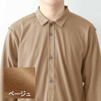冬の乾燥対策に!椿油配合うるおいニット オーガニックコットンスムースニットメンズパジャマ上着単品・長袖/かぶり/ポロカラー 【オーダーメイド】