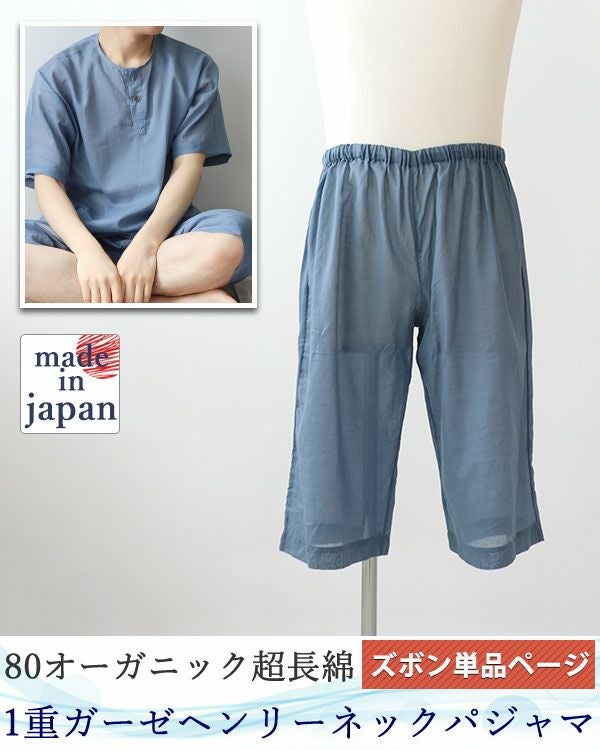 新感覚ガーゼ!柔らかいのにサラサラの肌触り 80オーガニック超長綿1重ガーゼメンズパジャマズボン・短パン 【オーダーメイド】