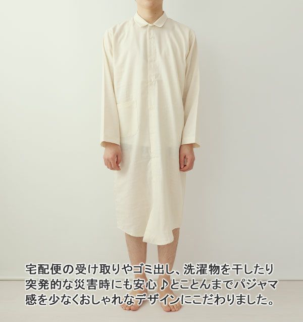 解放感とふわふわした柔らかさに包まれる ふわふわ柔らかダブルガーゼメンズスリーパー・長袖/前開き/襟あり 【オーダーメイド】