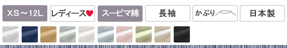 スーピマ超長綿レディースパジャマ 上下セット・長袖/かぶり/ラウンドネック