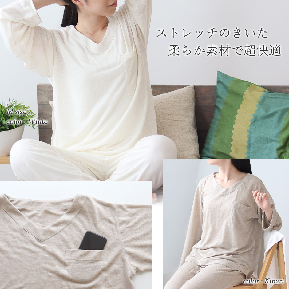 ニット好きのお客様からストレッチがきく麻パジャマが欲しいとのご要望から1年間生地を探し、ようやく商品化致しました!