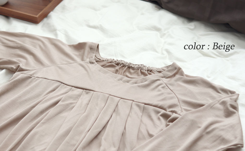シルクニットレディースパジャマ上下セット・長袖/かぶり/Aライン/胸元切替タック