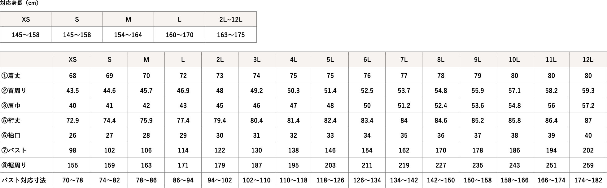 1cm単位で丈をかえられます(未選択の場合はサイズ表どおり)