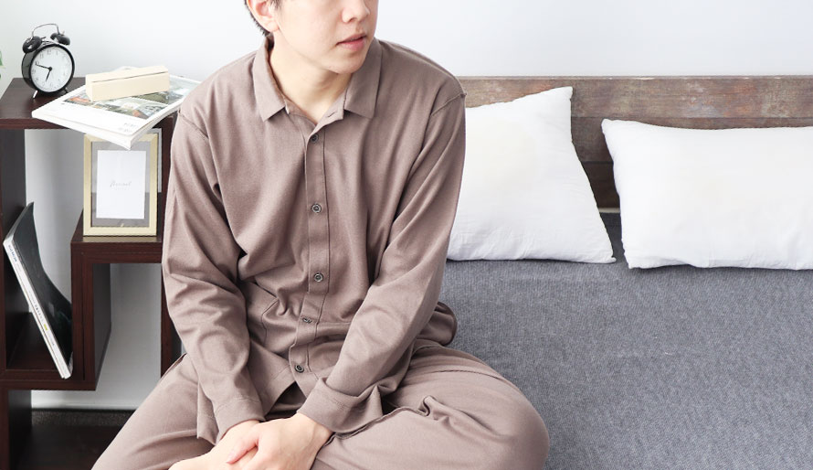 敏感肌用のパジャマはヌボーっとしたイメージになりがち。つくるパジャマでは、細部にシャツのようなデザインを取り入れることでシンプルで上品な印象に。また、着心地はリラックスウェアのように快適♪スムースニットパジャマのもっちりとした肌触りが素肌をやさしく包み込んでくれます。