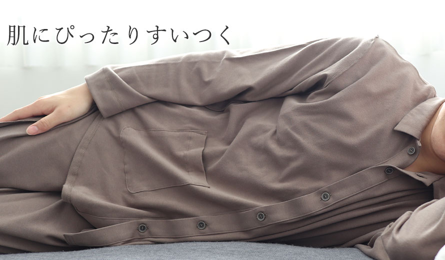 1晩に平均20~30回の寝返りをするといわれています。 身体の一部に負担をかけない為にも、血行不良を防ぐ為にも必要です。締め付け感がなく、体を動かしやすい無理のないゆったりしたデザインです。