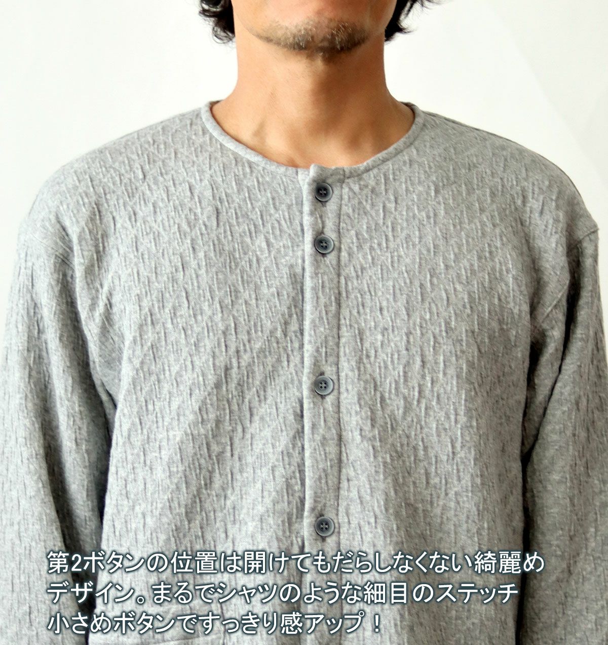 他の画像を見る 蒸れずに極暖!睡眠のために開発された冬のニットキルト 【翌営業日出荷】ニットキルトメンズパジャマ 上下セット・長袖/前開き/襟なし 【グレー/Mサイズ】 冬 綿 ニット 【税込価格】 ¥ 20,790 税込 睡眠のために開発された冬のニットキルトパジャマの前開き襟なしタイプ。メンズXS~5Lまで。肌にあたる面は綿100%、中わたにナイロンウーリー糸を入れることで、蒸れずに抜群の暖かさを実現しました。袖丈、股下を調整可能です。 (0) カートに入れる お気に入りに登録する