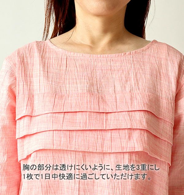 他の画像を見る 夏の定番!清涼感あるシボ加工でべたつかない 近江ちぢみ麻レディースワンピース・半袖/かぶり/ラウンドネック 【オーダーメイド】 夏 麻 【税込価格】 ¥ 18,480 税込 近江ちぢみの麻100%パジャマの半袖ラウンドネックワンピース。レディースXS~5Lサイズまで。胸元のタックが女性らしさを演出しながら、透け防止と機能的。ちぢみのシボ加工でべたつかなく涼しい夏の定番パジャマです。先染シャンブレーで光沢も美しい一枚。 5.00 (1) 詳細を見る お気に入りに登録する