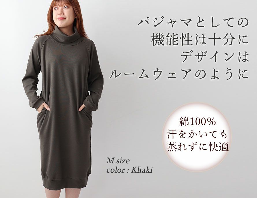 他の画像を見る 首元、ゆったりあったかルーズタートルネック コットンムースレディースワンピース・長袖/かぶり/タートルネック 【オーダーメイド】 冬 綿 ニット 【税込価格】 ¥ 10,780 税込 滑らかな肌触りが心地良いスムースニットのレディースワンピースパジャマからタートルネックデザインの登場です!首元が暖かく、下にレギンスなどを合わせることで冬のルームウェアとして大活躍してくれます! 5.00 (1) 詳細を見る お気に入りに登録する