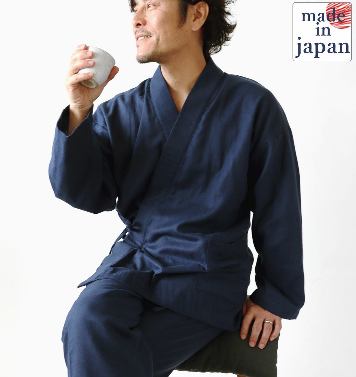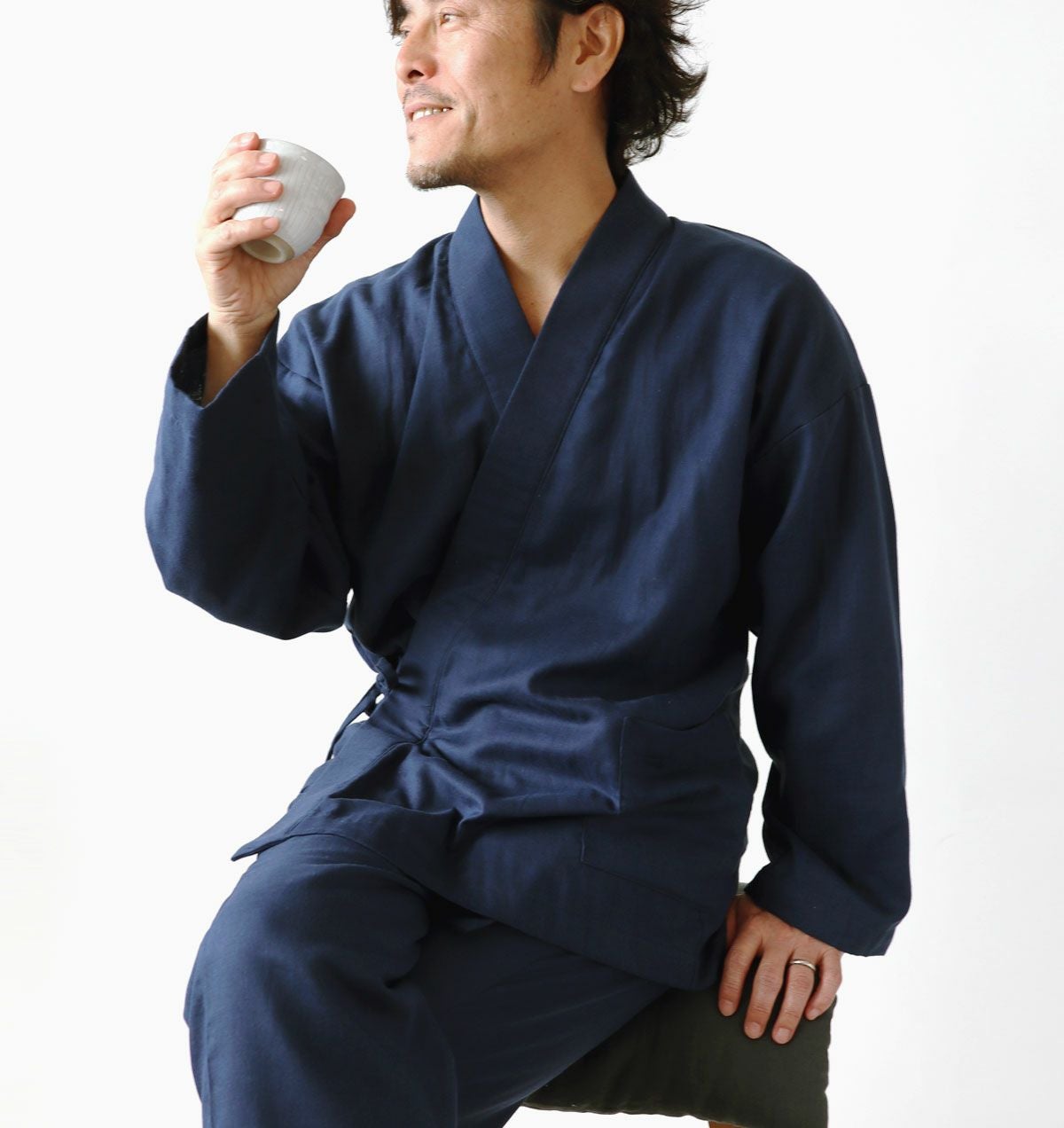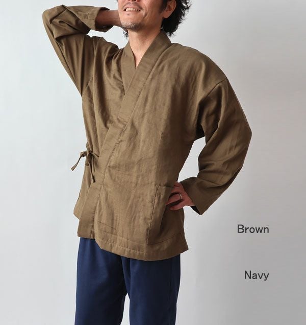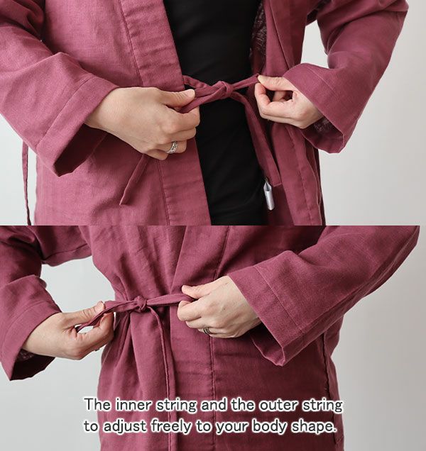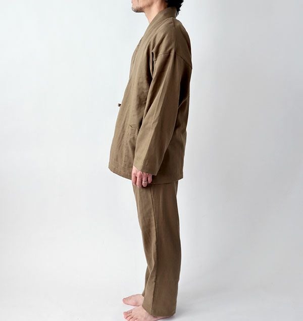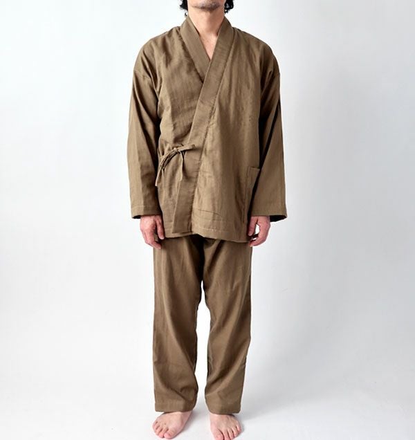 This is Double Gauze Samue Pajama Set for Women. The fabric is made with 100% cotton and treated using the laborious method called the Wazarashi, which is Japanese traditional method of cotton scouring. Its softness and breathable comfort of wearing will let you sleep well.