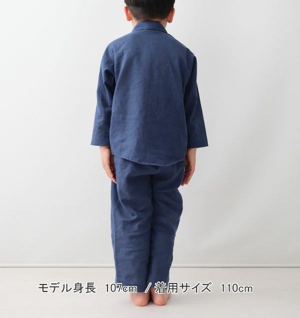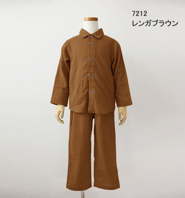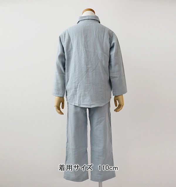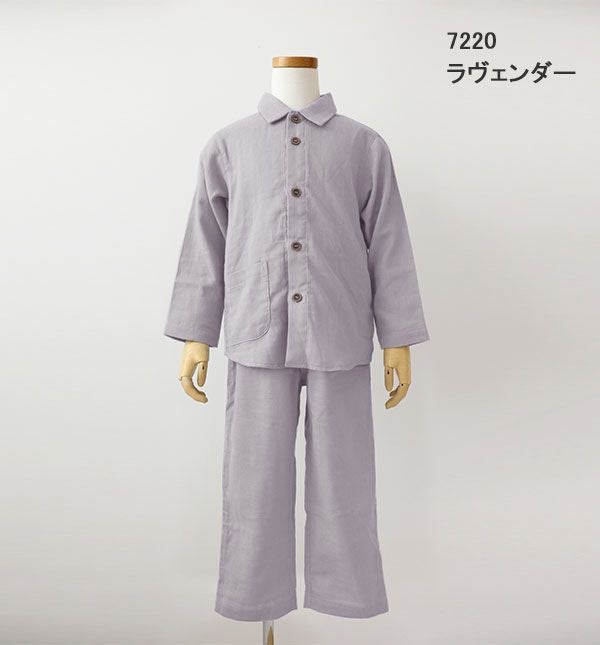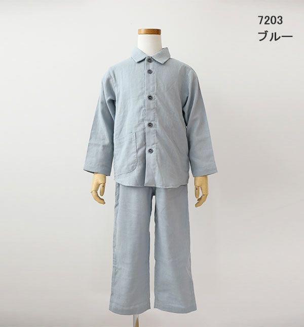昔ながらの和晒製法が生み出す特別な風合い 和晒京ふたえガーゼ男の子パジャマ上下セット・長袖/前開き/襟あり 【オーダーメイド】